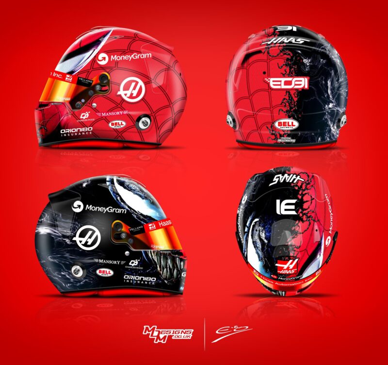 Kask Estebana Ocona nawiązuje natomiast do Spider-Mana i Venoma.