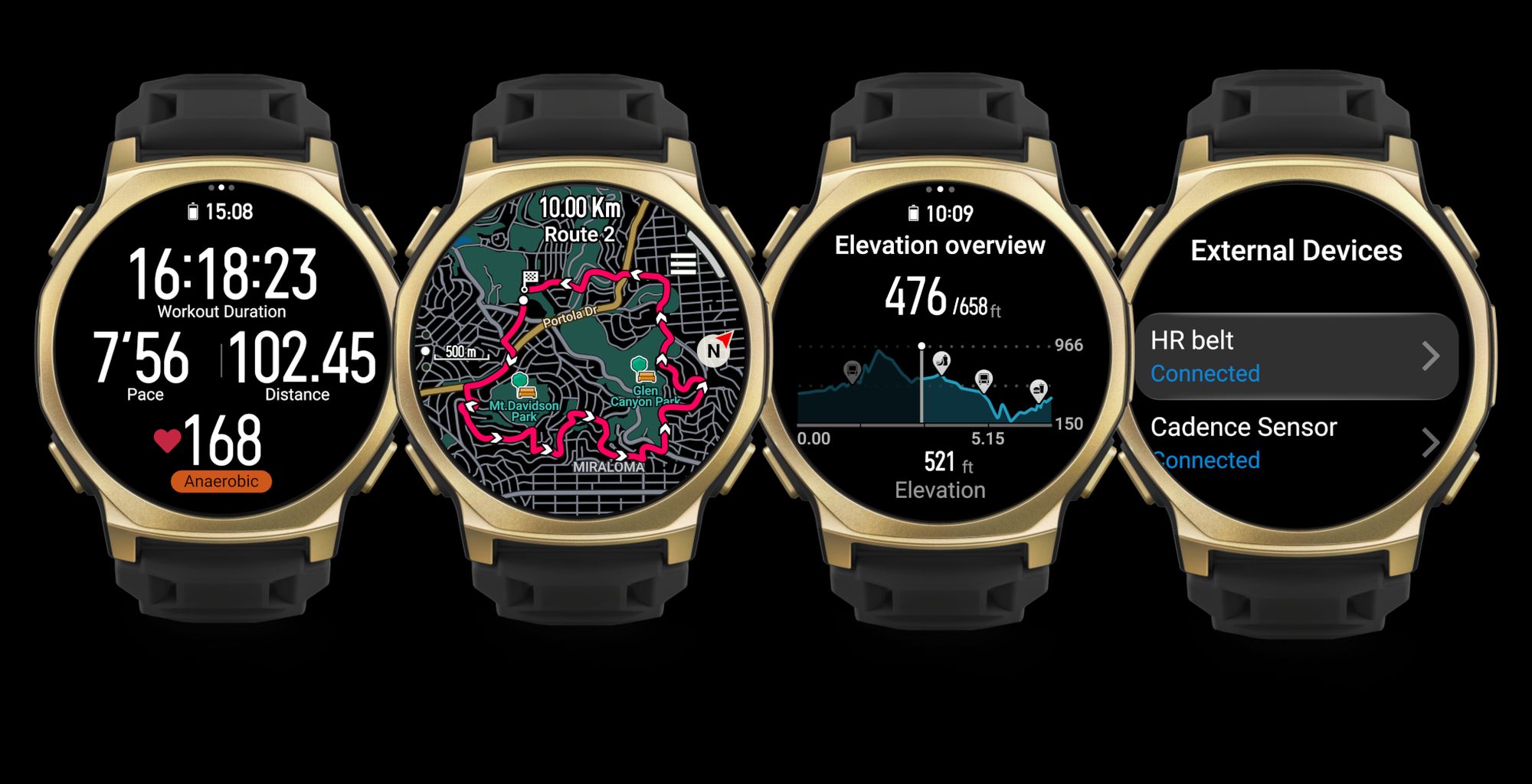 Zegarek oferuje ponad 180 trybów sportowych, w tym specjalne formaty dedykowane zawodom HYROX. Ekosystem jest otwarty na urządzenia zewnętrzne – T-Rex 3 Pro może łączyć się z pasami HR, miernikami mocy czy kadencji innych producentów.