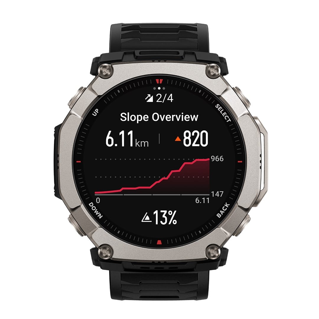 T-Rex Ultra 2 oferuje 64 GB pamięci — dwukrotnie więcej niż model T-Rex 3 Pro. W praktyce oznacza to miejsce na mapy, aplikacje, dane treningowe i wszystko to, co w zegarkach klasy outdoorowej zaczyna być standardem.