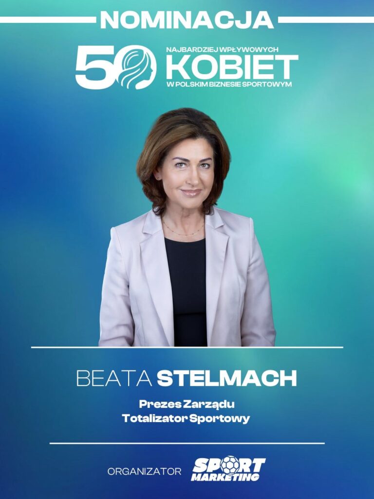 Prezes Totalizatora Sportowego Beata Stelmach znalazła się w gronie nominowanych w prestiżowym zestawieniu 50 Najbardziej Wpływowych Kobiet w Polskim Biznesie Sportowym. Ranking organizowany przez portal SportMarketing.pl wyróżnia liderki, które mają realny wpływ na rozwój branży sportowej w Polsce – zarówno w obszarze marketingu, sponsoringu, jak i zarządzania oraz strategii biznesowej.