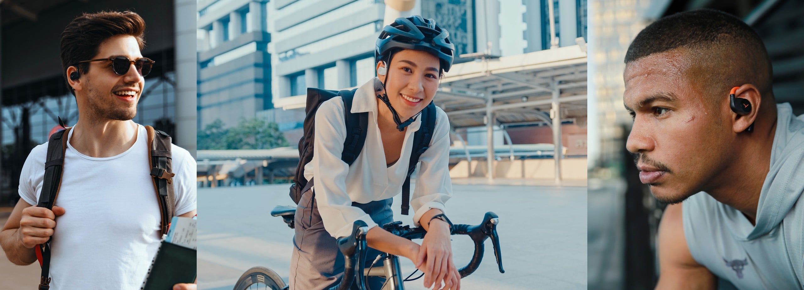 Model Verio 200 Sport to słuchawki typu open-ear – dźwięk nie jest kierowany bezpośrednio do kanału słuchowego, ale emitowany przed nim. Dzięki temu użytkownik słyszy zarówno muzykę, jak i dźwięki otoczenia, co jest najważniejsze dla osób ćwiczących na zewnątrz.
