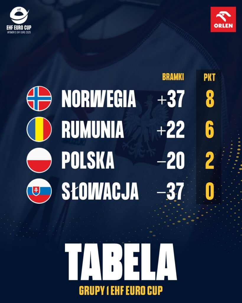 Podopieczne selekcjonera Arne Senstada po czterech kolejkach fazy grupowej wciąż pozostają w grze o miejsce w najlepszej czwórce EHF EURO Cup 2026. Dotychczas Polki odniosły jedno zwycięstwo – na inaugurację pokonały u siebie Słowację 28:20. W kolejnych spotkaniach musiały jednak uznać wyższość rywalek – najpierw przegrały na wyjeździe z Rumunią 29:34, a następnie dwukrotnie uległy mistrzyniom świata z Norwegii (24:31 oraz 16:32). w tej chwili Biało-Czerwone mają na koncie dwa punkty i bilans bramkowy na poziomie -20.