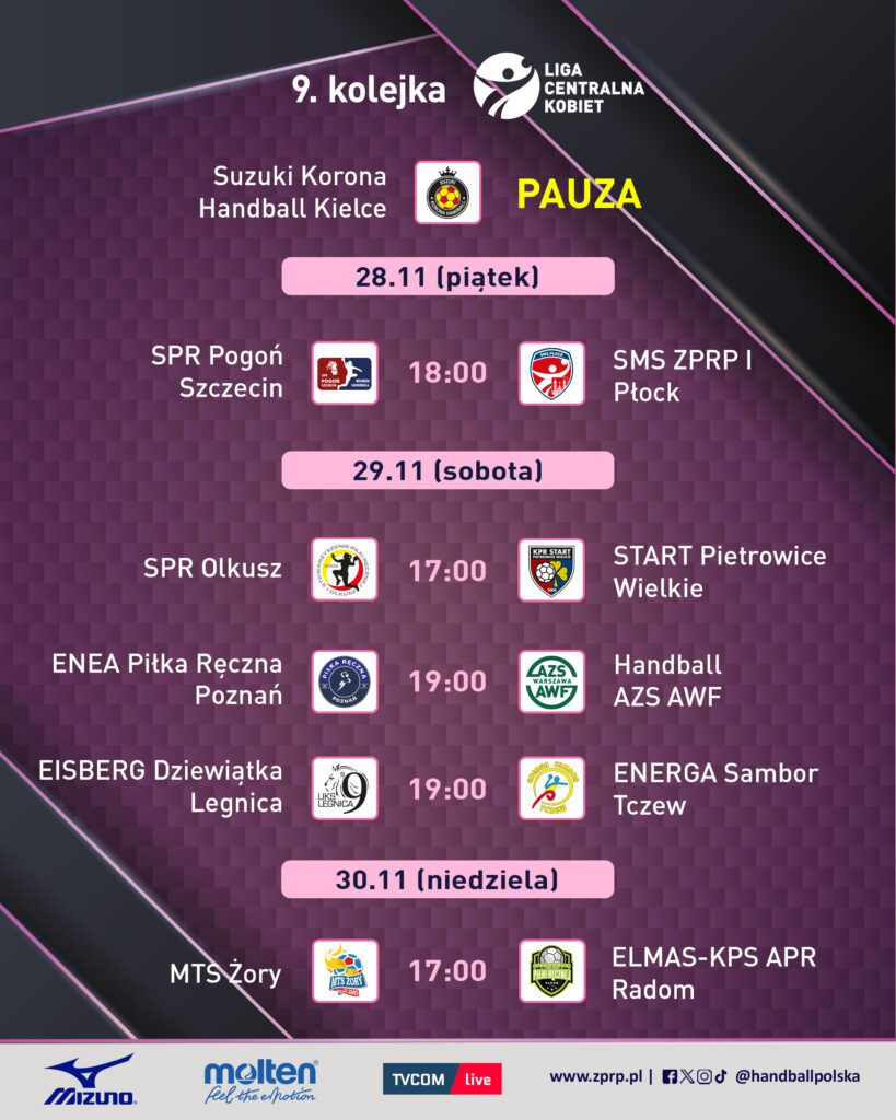Po przerwie na zgrupowanie reprezentacji Polski Liga Centralna Kobiet wraca do gry, a przed nami weekend pełen kluczowych rozstrzygnięć. Choć Suzuki Korona Handball Kielce pauzuje, emocji z pewnością nie zabraknie. Zespoły wracają na parkiet głodne rywalizacji, a tabela wciąż pozostaje bardzo spłaszczona. Sprawdźmy, co czeka nas w dziewiątej serii spotkań.
