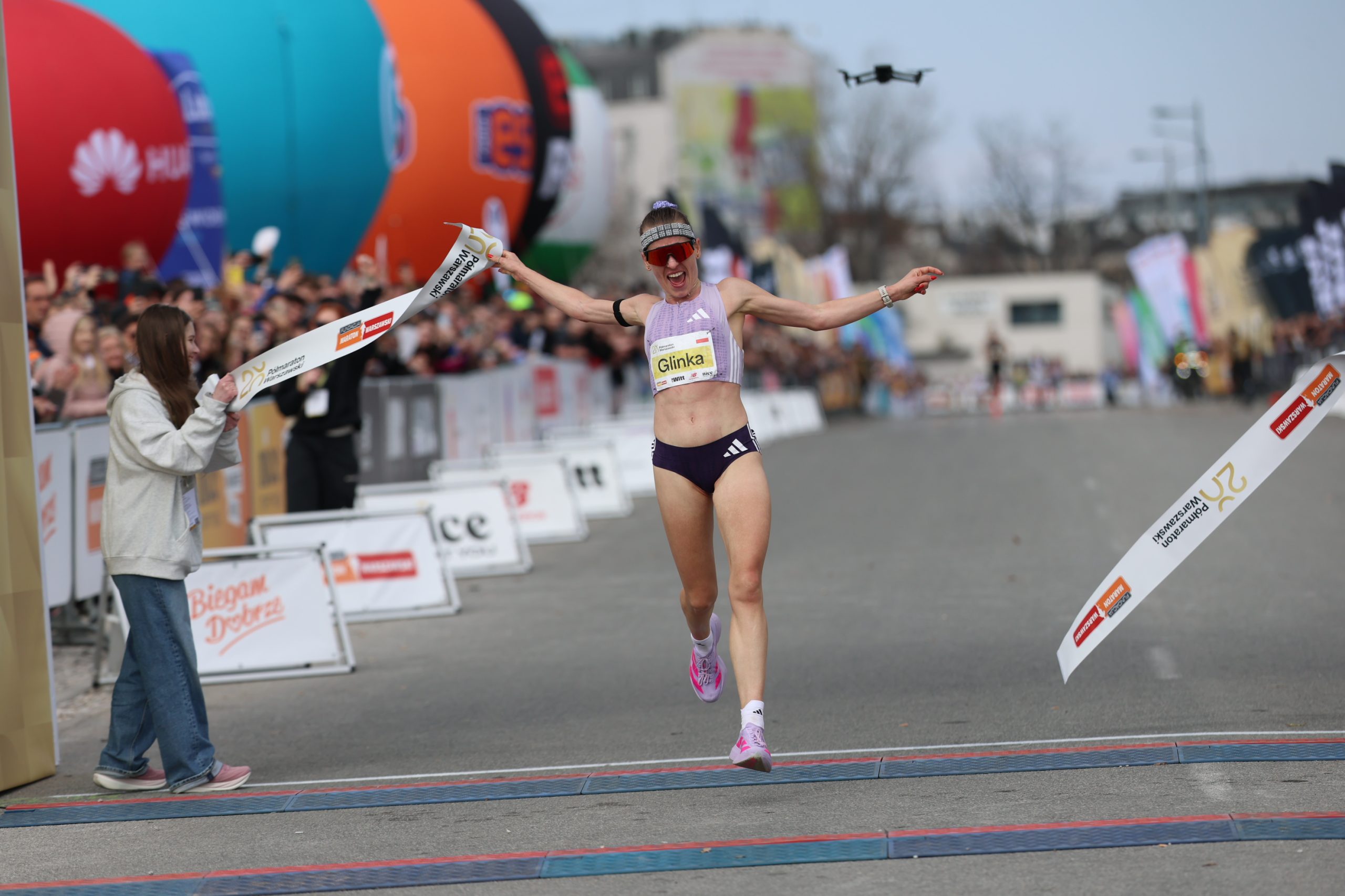 Glinka od razu objęła prowadzenie i nie oddała go do samej mety. Pierwsze 5 km pokonała w 16:20, na 10 km zameldowała się z wynikiem 32:59, a na 15 km międzyczas wyniósł 49:39. Warszawianka dała z siebie wszystko i wpadła na metę z fantastycznym wynikiem 1:09:25. Do rekordu kraju ustanowionego w 2021 roku przez Karolinę Nadolską zabrakło jej zaledwie 7 sekund.