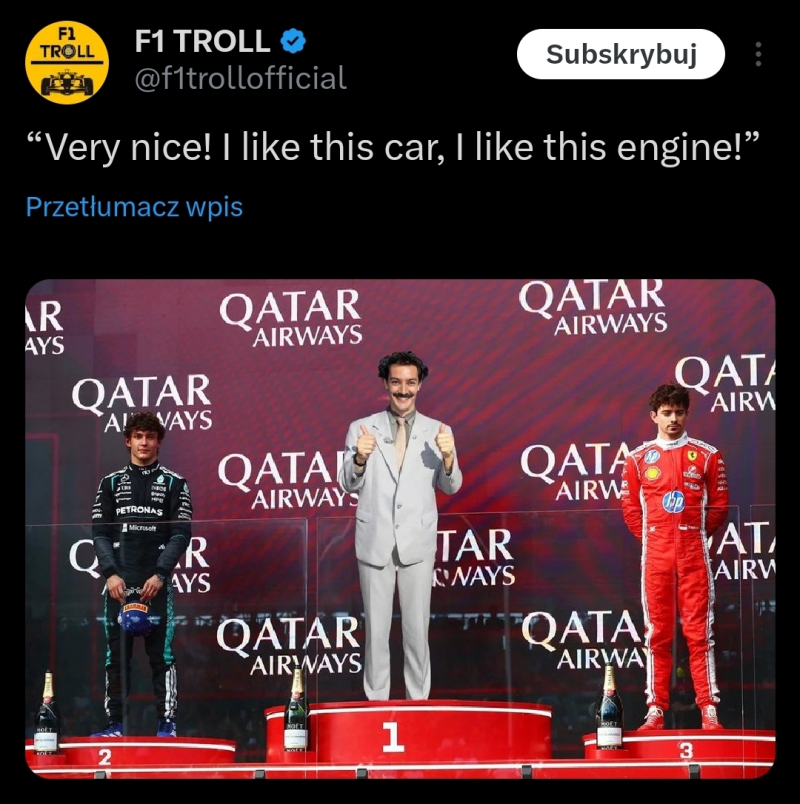 Poniżej zobaczycie galerię blisko 60 memów po inauguracji sezonu 2026 Formuły 1. Zachęcam do wstawiania swoich propozycji w komentarzach!