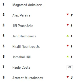 Z kolei były mistrz wagi półciężkiej awansował z 5. na 4. pozycję dywizji półciężkiej, mijając Khalila Rountree Jr. i to mimo braku występu w ostatnim czasie. Jego nazwisko wciąż ma ogromną znaczenie w dywizji półciężkiej. Awans bez walki to efekt przetasowań, ale też dowód na to, iż UFC przez cały czas widzi w nim jednego z kluczowych graczy. Oprócz tego może mieć to ogromne znaczenie ze względu na aktualną sytuację w dywizji półciężkiej UFC.