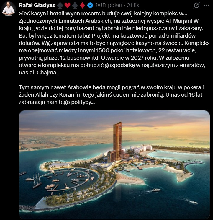 Wynn Al Marjan Island może stać się jednym z najbardziej rozpoznawalnych obiektów w ZEA — równie ikonicznym jak Burj Al Arab czy Atlantis The Palm. Odważna decyzja o legalizacji kasyna może otworzyć drogę do zupełnie nowego rozdziału w historii Emiratów.