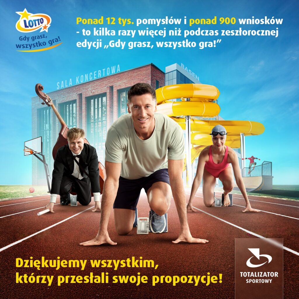 W trwającej od 5 września do 7 listopada fazie zgłoszeń w ramach kampanii społecznej Totalizatora Sportowego „Gdy grasz, wszystko gra”, której twarzą jest Robert Lewandowski, wpłynęło rekordowe 12 734 pomysłów na doposażenie, budowę lub remont obiektów kulturalnych i sportowych. Złożono także 907 wniosków w ramach towarzyszącego kampanii programu grantowego. Po ich weryfikacji w następnym etapie zaakceptowane projekty zostaną poddane głosowaniu, które wystartuje 26 stycznia 2026 roku.