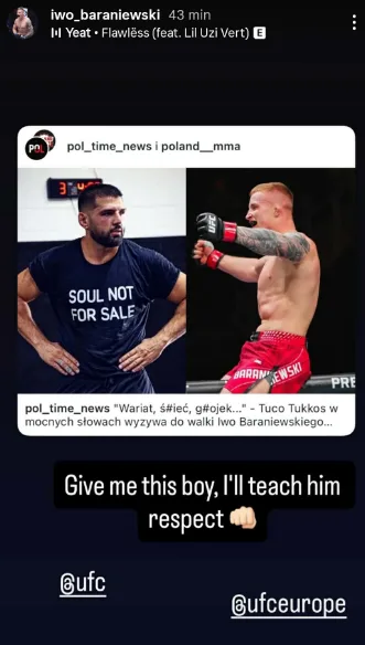 Zapowiada się na szybką lekcję pokory? Iwo Baraniewski z szybką odpowiedzią dla aroganckiego zawodnika – Polak podejmuje rękawicę.