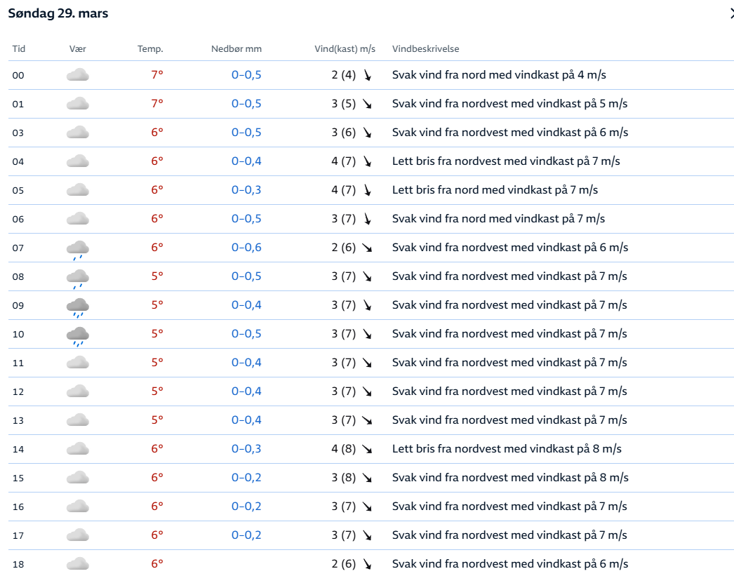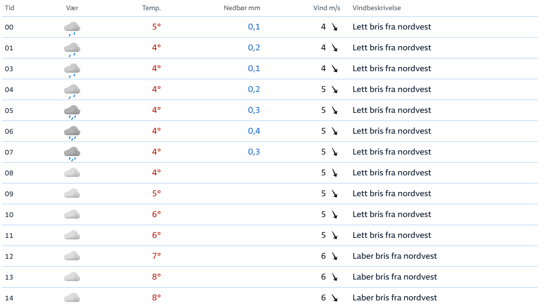 Prognoza pogody dla Bydgoszczy Źródło: yr.no