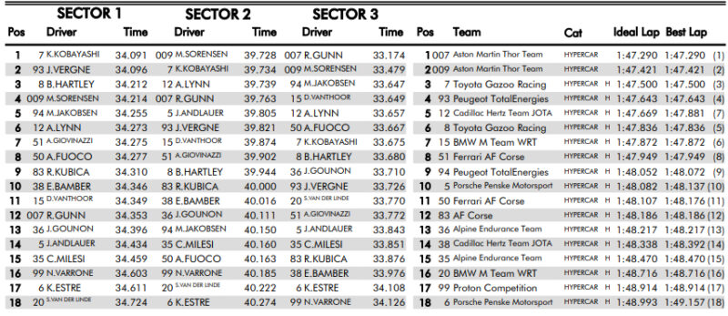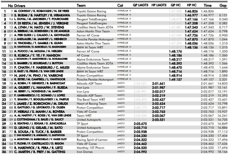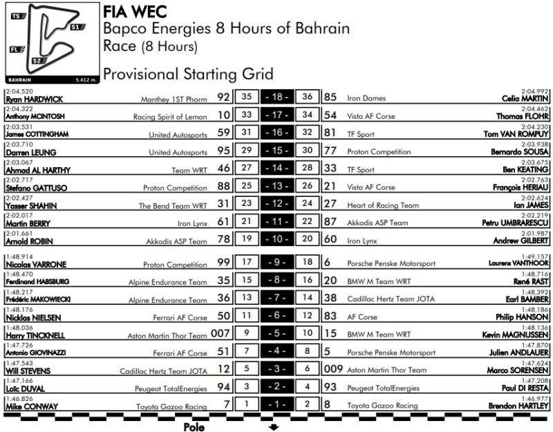 Pierwszy rząd zablokowała Toyota, która tradycyjnie w Bahrajnie jest szybka. Ferrari #51 zajęło 7. miejsce i jest w zdecydowanie lepszej sytuacji niż AF Corse #83, które ruszy jako 12.