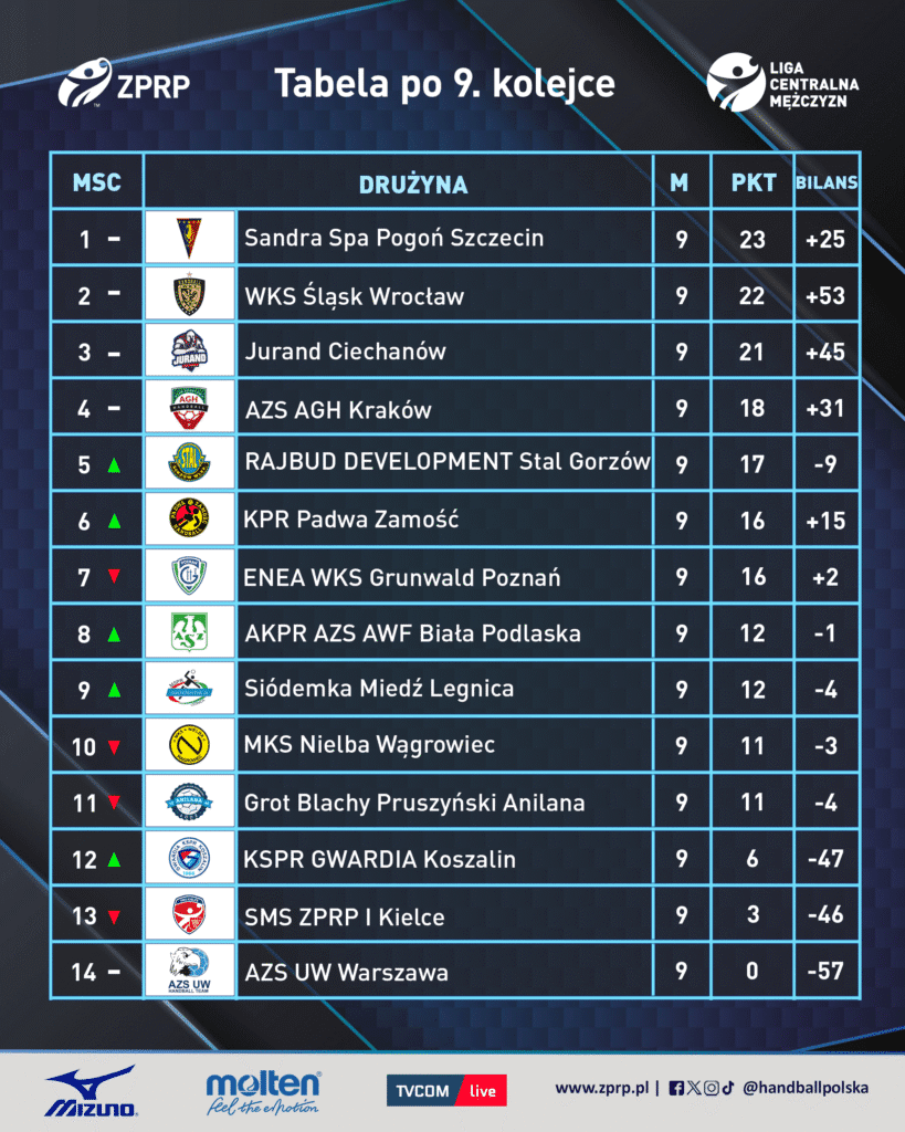 9. kolejka Ligi Centralnej Mężczyzn przejdzie do historii jako jedna z najbardziej nieprzewidywalnych odsłon tego sezonu. Kibice w całej Polsce otrzymali mieszankę wielkich emocji: od spektakularnej sensacji w Koszalinie, przez dramatyczne derby Wielkopolski, aż po zacięte pojedynki na szczycie tabeli. W kilku halach wynik ważył się do ostatnich sekund, a o losach punktów decydowały interwencje bramkarzy, czerwone kartki i nerwy z stalowych lin.