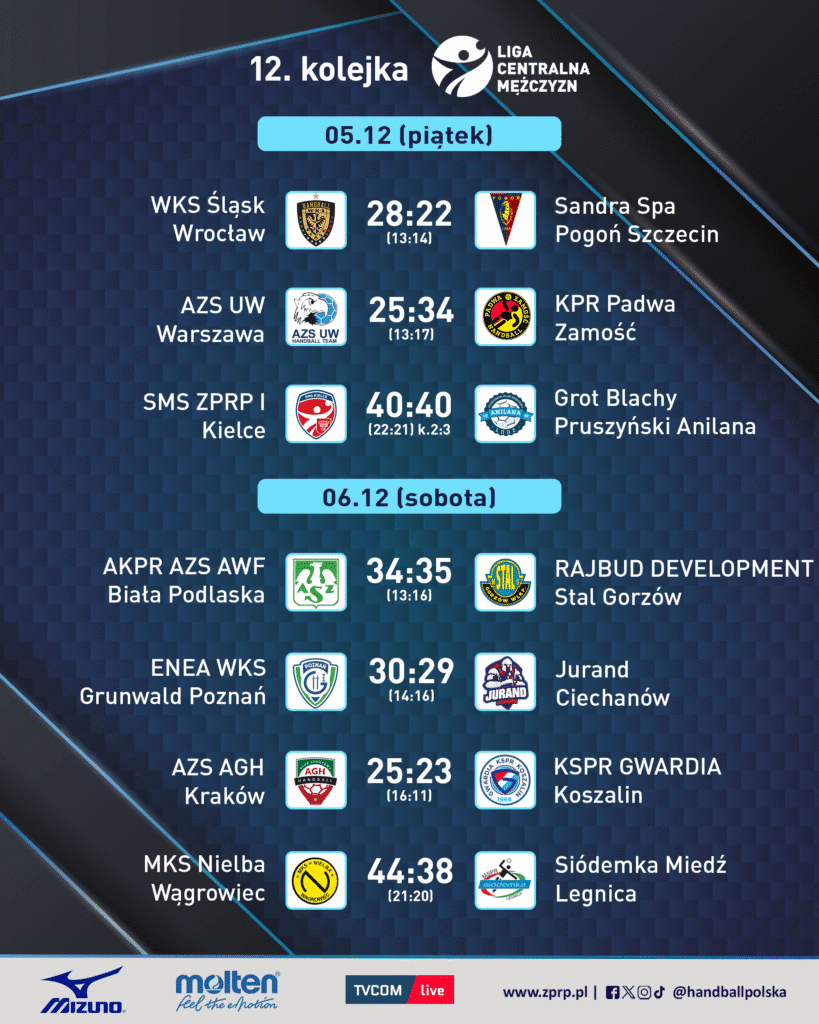 Dwunasta kolejka Ligi Centralnej Mężczyzn przyniosła wszystko, co w piłce manualnej najciekawsze: mecze na styku, historyczne strzelaniny, bramki decydujące w ostatnich sekundach i starcia, które trzymały w napięciu od pierwszego do ostatniego gwizdka. Lider został zatrzymany, wicelider zmienił właściciela, a drużyny ze środka tabeli pokazały, iż potrafią grać z niezwykłą determinacją. Była to kolejka, która ułożyła na nowo układ sił w lidze i dodała dodatkowego smaczku rywalizacji w nadchodzących tygodniach. Teraz, gdy emocje nieco opadły, czas przyjrzeć się bliżej temu, co wydarzyło się na ligowych parkietach.