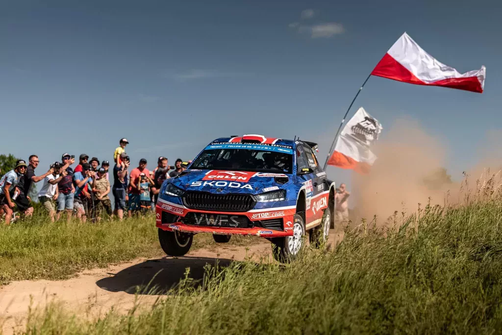 Wiceliderami nie są już Roope Korhonen i Anssi Viinikka. Ich Toyota GR Yaris Rally2 dachowała po przejechaniu 4,9 km najdłuższego w niedzielnym harmonogramie, nowego OS-u Pozezdrze (20 km). Tym samym drugie miejsce przejęli Polacy. Miko Marczyk z Szymonem Gospodarczykiem toczą zaciętą walkę o pozycję z Jonem Armstrongiem i Shane’em Byrne’em (Ford Fiesta Rally2). Irlandczycy wygrali z duetem ORLEN Teamu tylko na jednym oesie, ale po pętli zmniejszyli stratę do 6,2 sekundy.