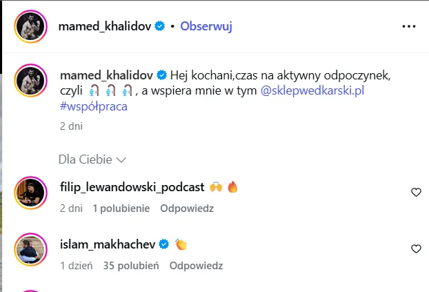 Co ciekawe, osiągnięcia Mamedowi pogratulował także sam mistrz UFC, którego wielu uznaje za najlepszego w tej chwili zawodnika mieszanych sztuk walki na świecie. Mowa o Islamie Makhachevie. Rosjanin napisał pod postem opublikowanym przez Khalidova gratulacje: