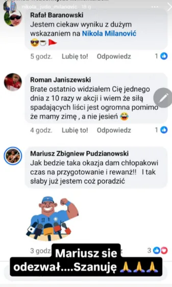 Spotkało się to oczywiście z odpowiedzią Nikoli Milanovia, który udostępnił w swoich social mediach wpis „Pudziana” oraz dodał:
