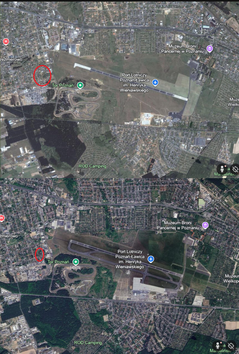 Warto też uściślić sprawę budownictwa mieszkaniowego w okolicy toru. Zadałem sobie trochę trudu i porównałem zdjęcia lotnicze sprzed 25 lat i obecne. Wynika z nich, iż nie nastąpiło w tym czasie drastyczne zbliżenie się budynków mieszkalnych do nitki toru.