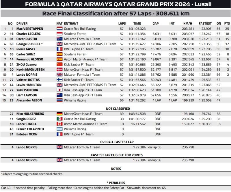 | Lando Norris | McLaren Mercedes | 4 | 4 | 4 | 4 | 2 | 2 | 3 |