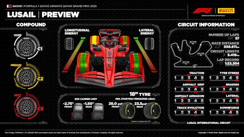 Na GP Kataru Pirelli zdecydowało się na przywiezienie twardego zestawu swoich mieszanek.