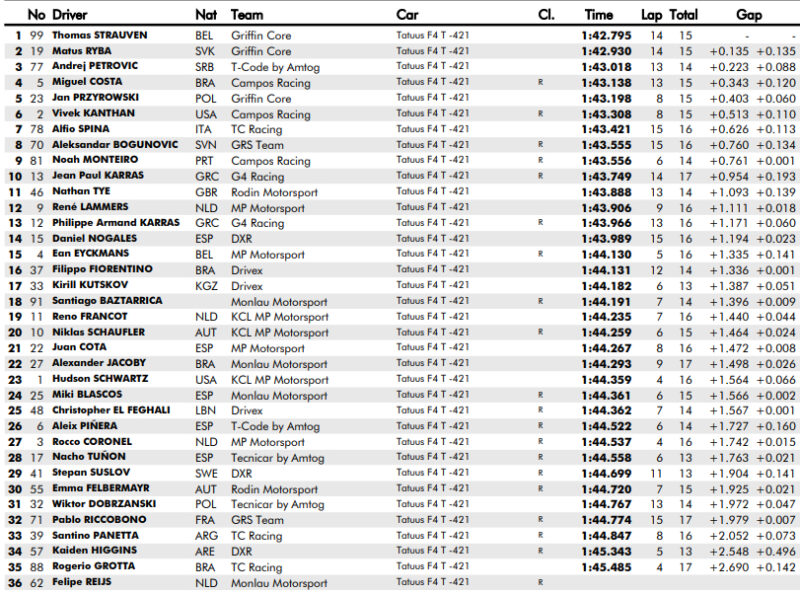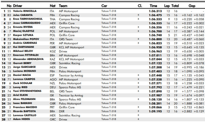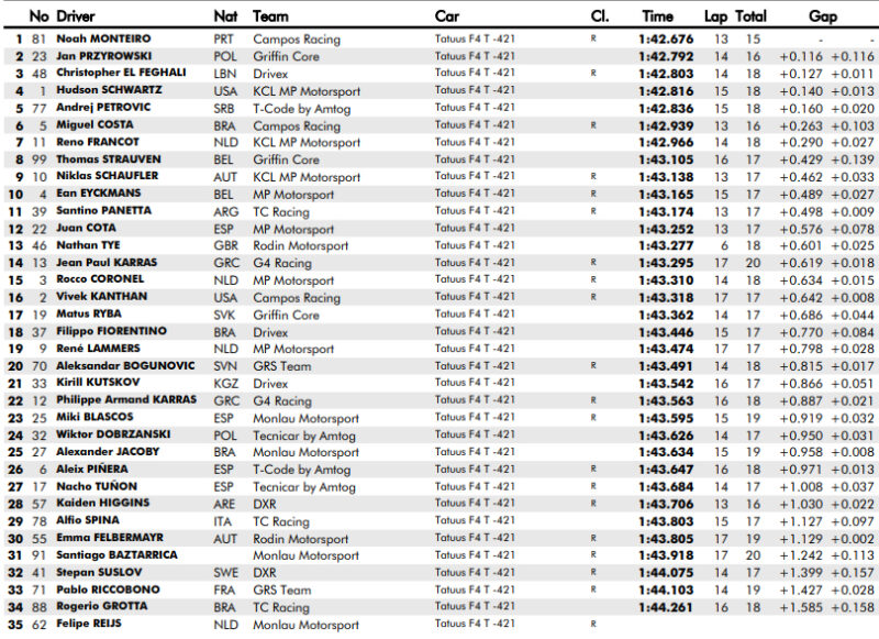 Wysoko w sesjach testowych był też Jan Przyrowski (Campos). W czwartek był piąty przy 31. miejscu Wiktora Dobrzańskiego (Tecnicar).