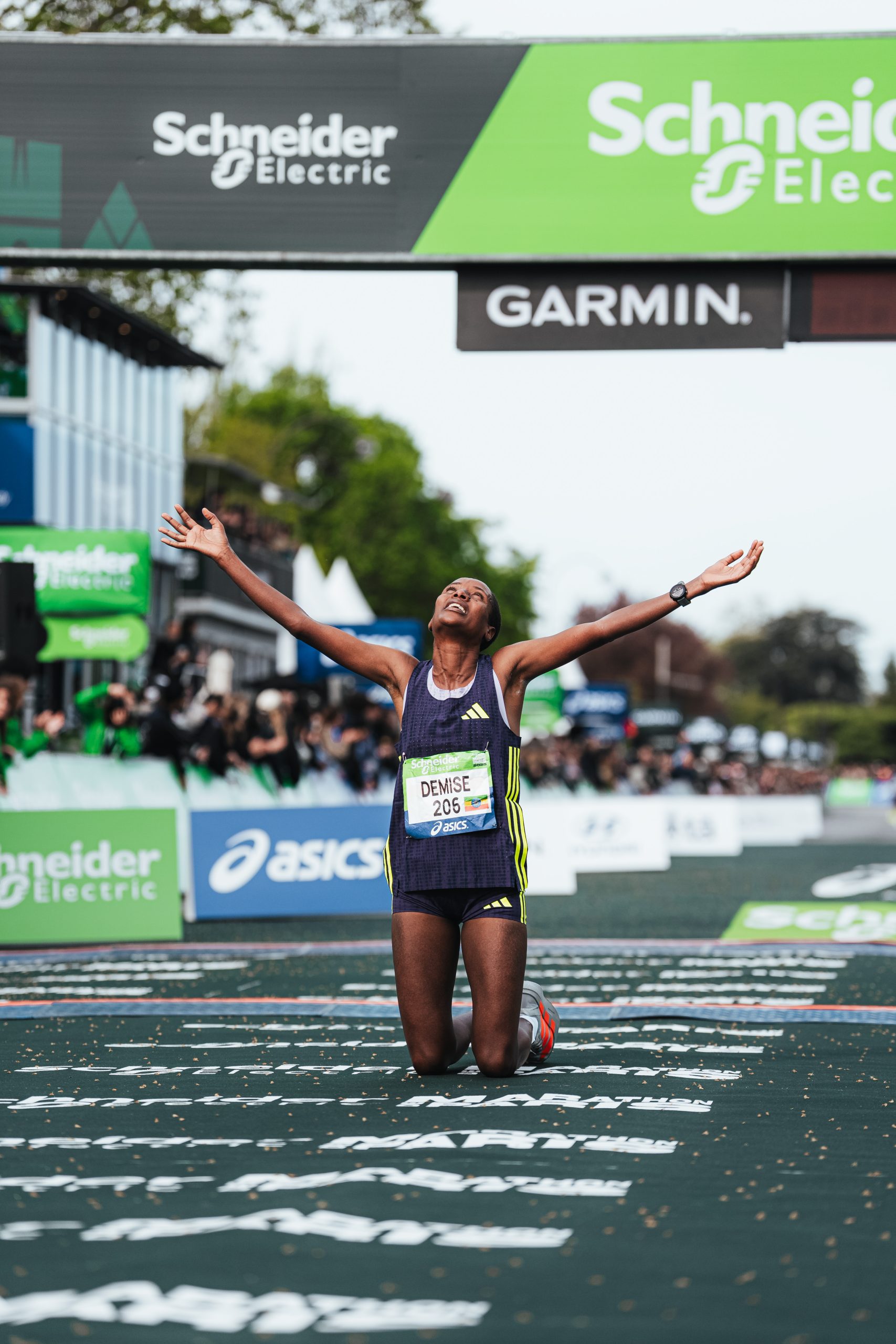 Na podium znalazły się także kolejna z Etiopek Misgane Alemayehu (2:19:08) oraz Kenijka Magdalyne Masai (2:19:17). Najlepszą z Francuzek była Mekdes Woldu (2:26:25) sklasyfikowana na ósmym miejscu. Pierwszą Europejką na mecie była się jednak Finka Alisa Vainio, sensacyjna zwyciężczyni tegorocznego maratonu w Sewilli. Z czasem 2:21:35 uplasowała się dzisiaj na szóstej pozycji.