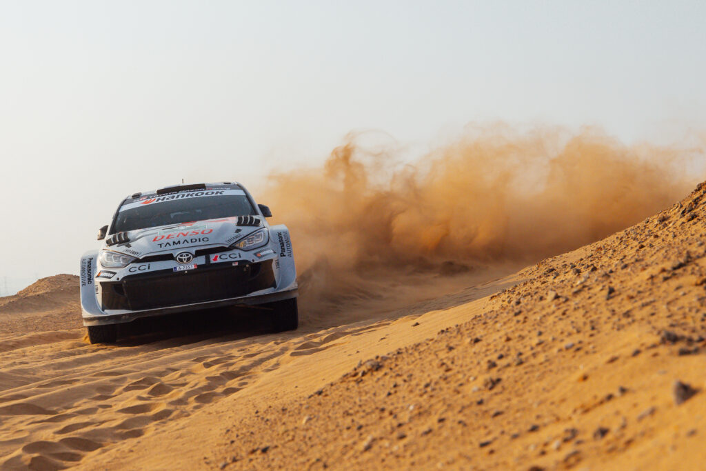 Sesks narzucił niesamowite tempo od samego początku pętli. Wygrywając drugi (SS2) i trzeci (SS3) odcinek specjalny, zbudował solidną przewagę wynoszącą 7,3 sekundy. Jego jazda była niemal bezbłędna, aż do momentu przestrzelenia skrzyżowania na odcinku Khulays, co kosztowało go kilka cennych sekund. Mimo tego błędu, kierowca Pumy Rally1 wrócił do strefy serwisowej jako lider rajdu.