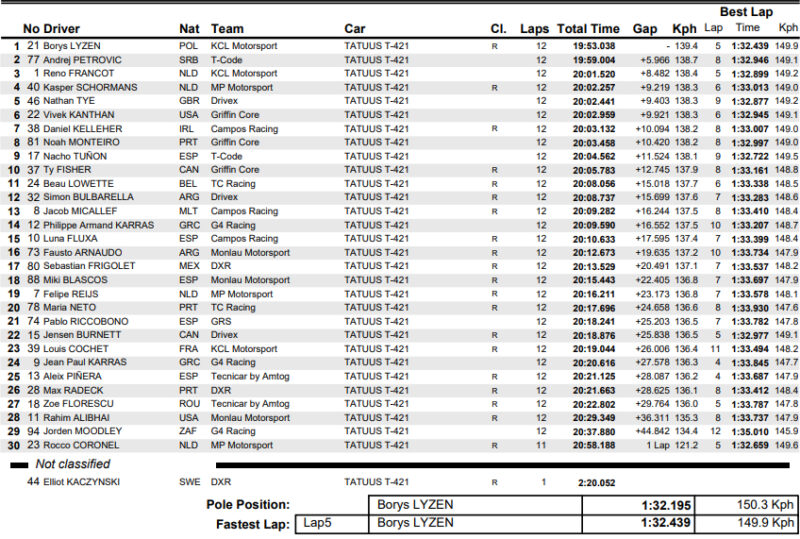 W kategorii E3 na torze Jarama w SWC jechał Kacper Sztuka. Polak w kwalifikacjach był 16. i zakończył pierwszy wyścig na 12. miejscu. W Sprincie był 14.