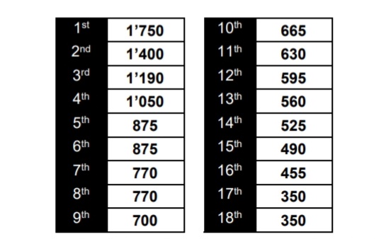 Poniżej prezentujemy wszystkie nagrody pieniężne za zajęcie poszczególnych miejsc w turnieju: