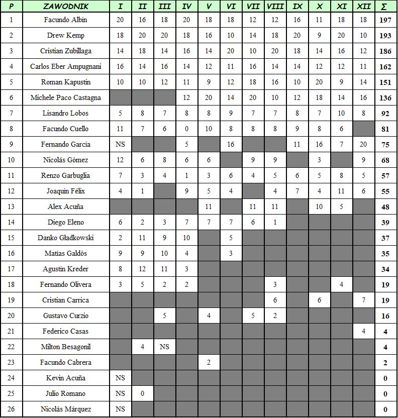 Tegoroczny cykl zmagań w Ameryce Południowej wkroczył już w końcową fazę. W środowy wieczór rozegrano przedostatnią rundę, a w najbliższą sobotę (14 lutego) z kolei poznamy wszystkich medalistów. Organizatorem obydwu imprez jest rzecz jasna Bahía Blanca. Zacięta rywalizacja o złoto toczy się w tej chwili między Drew Kempem a reprezentantem gospodarzy – Facundo Albínem. Brytyjczyk przed tym turniejem miał cztery punkty przewagi nad Argentyńczykiem.