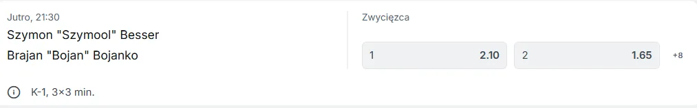 Szymon „Szymool” Besser vs. Brajan „Bojan” Bojanko – K-1, małe rękawice