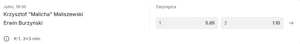 Krzysztof „Malicha” Maliszewski vs. Erwin „Erwin” Burzyński – K-1, małe rękawice