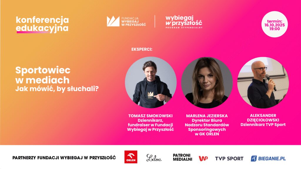 Wywiady przed lub po starcie w zawodach, konferencje prasowe, aktywności w social mediach, wystąpienia na scenie — to dziś codzienność każdego sportowca. Dobra wiadomość jest taka, iż każdy może pracować nad sobą i oswoić się z wystąpieniami publicznymi! Celem najbliższego warsztatu organizowanego przez fundację „Wybiegaj w Przyszłość” jest dyskusja, jak bez stresu i z pewnością siebie funkcjonować w mediach oraz przed publicznością.