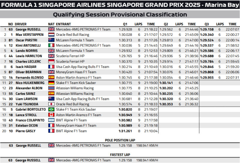 Kwalifikacje do Grand Prix Singapuru przyniosły nam dziś sporo emocji, a najlepszy był w nich Geroge Russell, uzyskując zdecydowanie najlepszy czas.