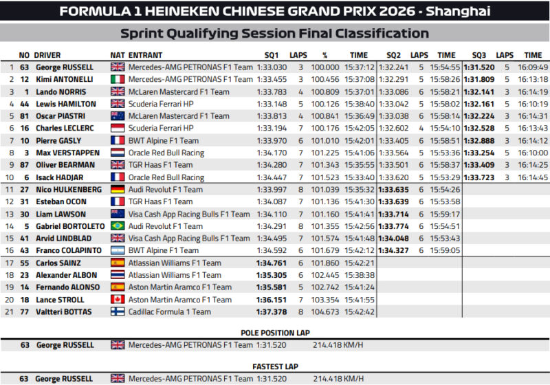 Poniżej zobaczycie wyniki wszystkich sesji weekendu wyścigowego Formuły 1 w ramach GP Chin. Kto był najszybszy?