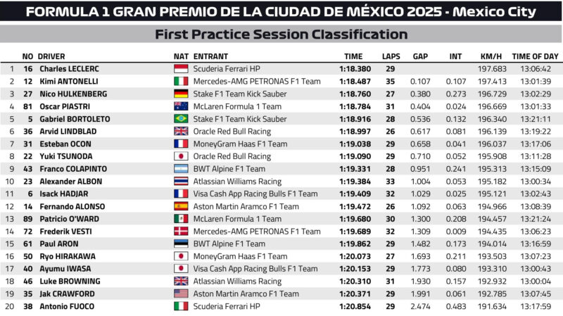 Poniżej zobaczycie wyniki wszystkich sesji weekendu wyścigowego Formuły 1 w ramach GP Meksyku. Kto był najszybszy?