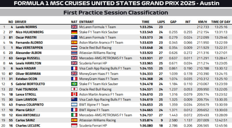 Poniżej zobaczycie wyniki wszystkich sesji weekendu wyścigowego Formuły 1 w ramach GP USA. Kto był najszybszy?