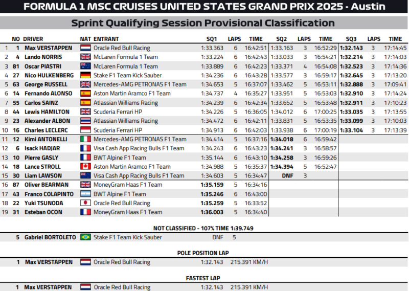 Kwalifikacje do Sprintu (Piątek, 17 października, godz. 23:30):