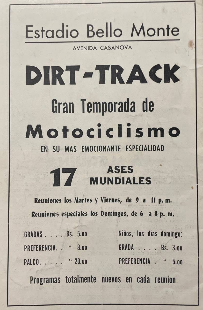 Budynek Centro Profesional del Este był łatwo rozpoznawalny w krajobrazie Caracas lat 50. XX wieku. Fakt ten bardzo pomógł mi w ustaleniu miejsca, w którym pod koniec 1959 roku odbyła się jedyna w historii seria zawodów żużlowych. O tych zawodach nie znajdziecie obszernych relacji prasowych z efektownymi fotografiami w światowych czasopismach motocyklowych, a w tej chwili nie ma też dostępu do archiwów lokalnej prasy. Pozostały jedynie listy pisane do brytyjskiego tygodnika Speedway Star & News oraz szwedzkiej gazety Racing przez bezpośrednich uczestników tamtych wydarzeń – Anglika Phila Bishopa oraz Szweda Berndta Nilssona.