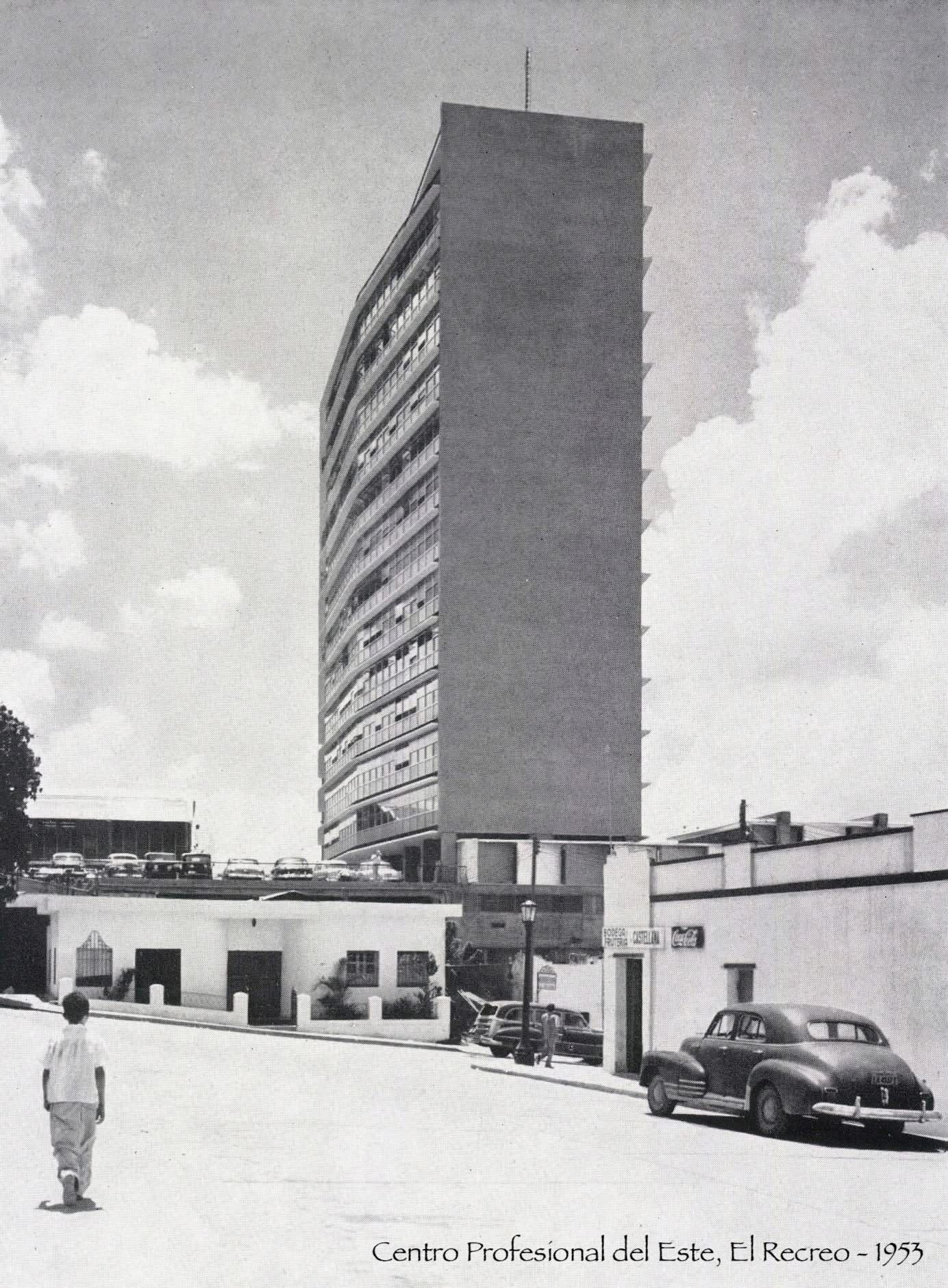 Tor żużlowy w Caracas, obok charakterystyczny budynek Centro Profesional del Este