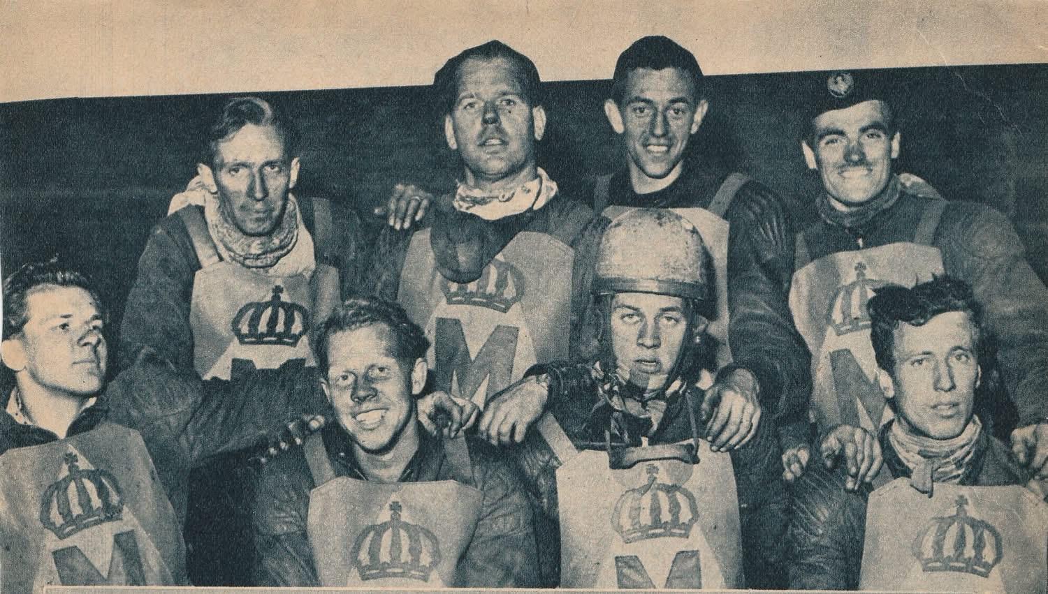 Monarkerna, Sztokholm, lata 50. XX wieku. Berndt Nilsson pierwszy z lewej w dolnym rzędzie.Ostatnim przesłaniem Berndta Nilssona z Wenezueli w grudniu 1959 roku była kartka noworoczna skierowana do czytelników gazety „Racing”: