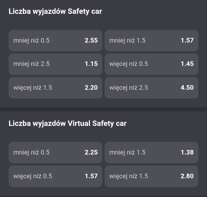 Czy czeka nas interesująca walka o zwycięstwo pomiędzy kierowcami Mercedesa? Czy na torze pojawi się samochód bezpieczeństwa? Zobaczcie kursy.